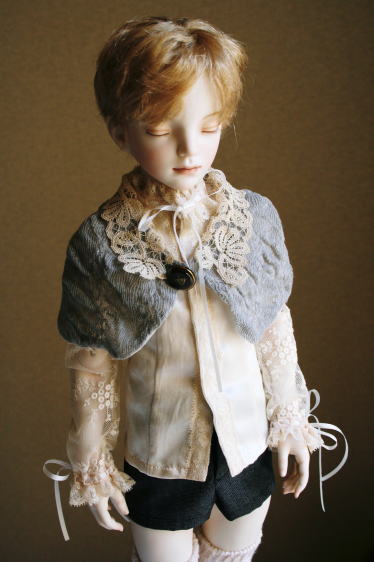 双子にする予定で二着お願いしていたのですが、双子にする前に17のお家が決まりました。 それで違う雰囲気のこの人形に着せることにしました。 |